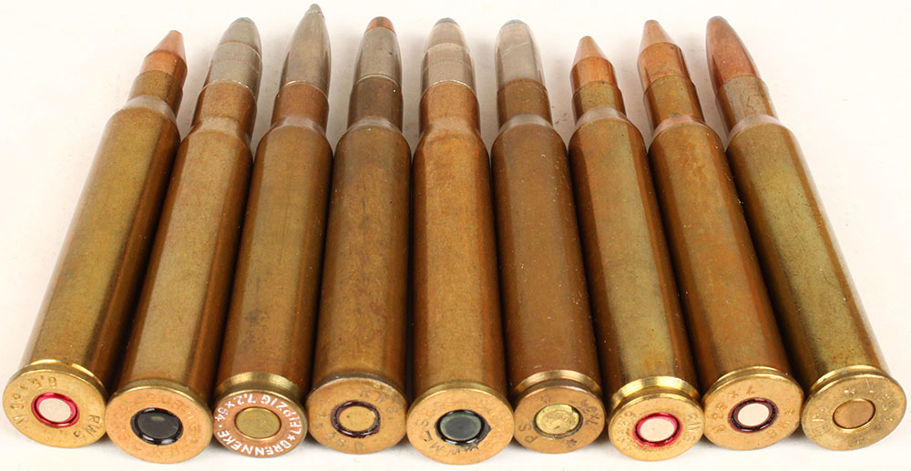 Lot of 9. Wilhelm Brenneke Cartridges. All different. (3) 7x65R, (2) 7x64, (2) 8x65R, (1) 6.5x64, (1) 6.5x65R. Grade: Excellent - Value: 10 to 30