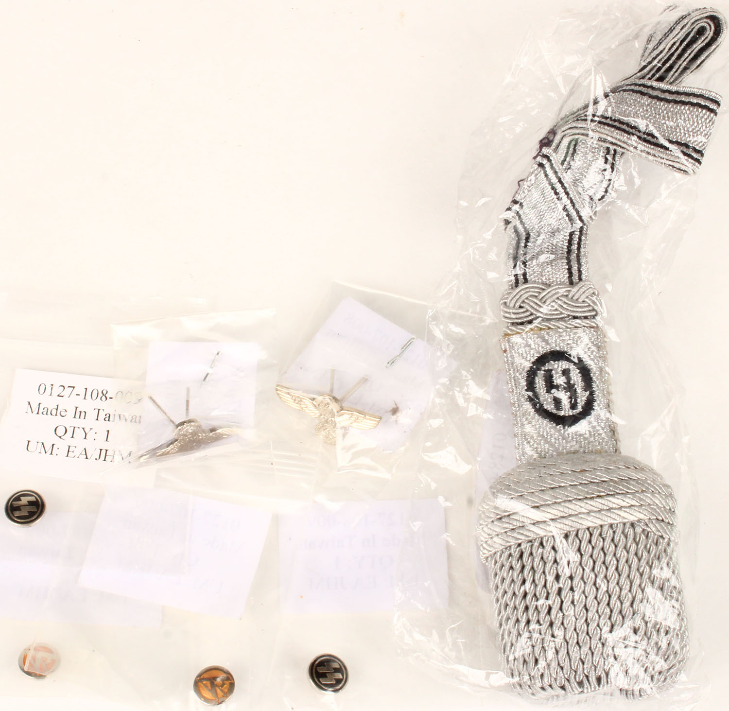 German, WW2 Sword/dagger knot, modern reproduction, comes with small SS pins. Grade: Excellent - Value: 10 to 40