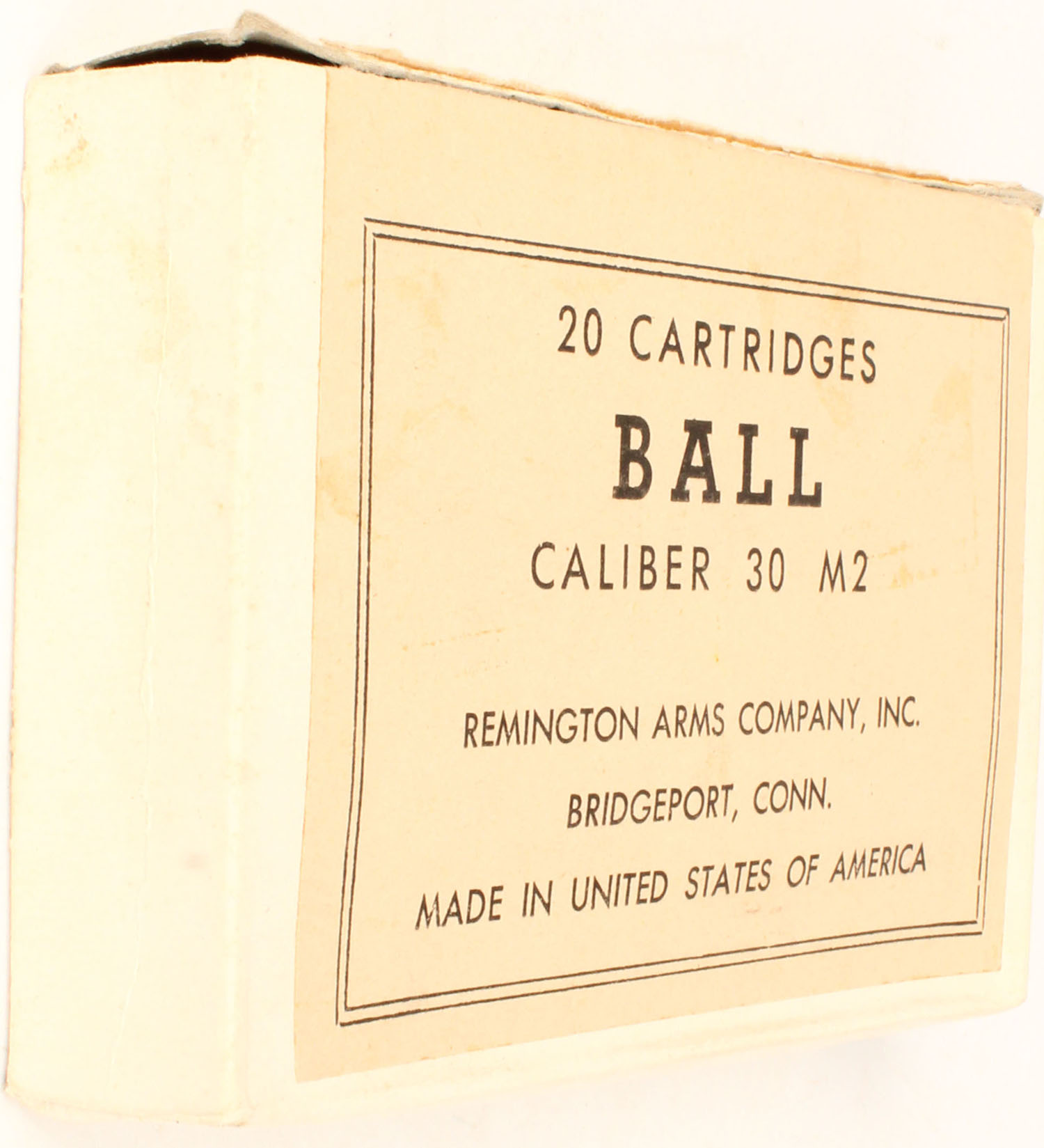 | Remington, .30 M2 Ball, 1pc, Full, buff box & label with black ...