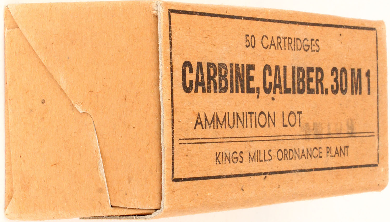 Kings Mill Ordnance Plant, .30 M1 Carbine, 1pc, FULL & SEALED, brown box with black print, box is solid with minor rub & edge wear. Grade: Excellent ++ - Value: 30 to 60
