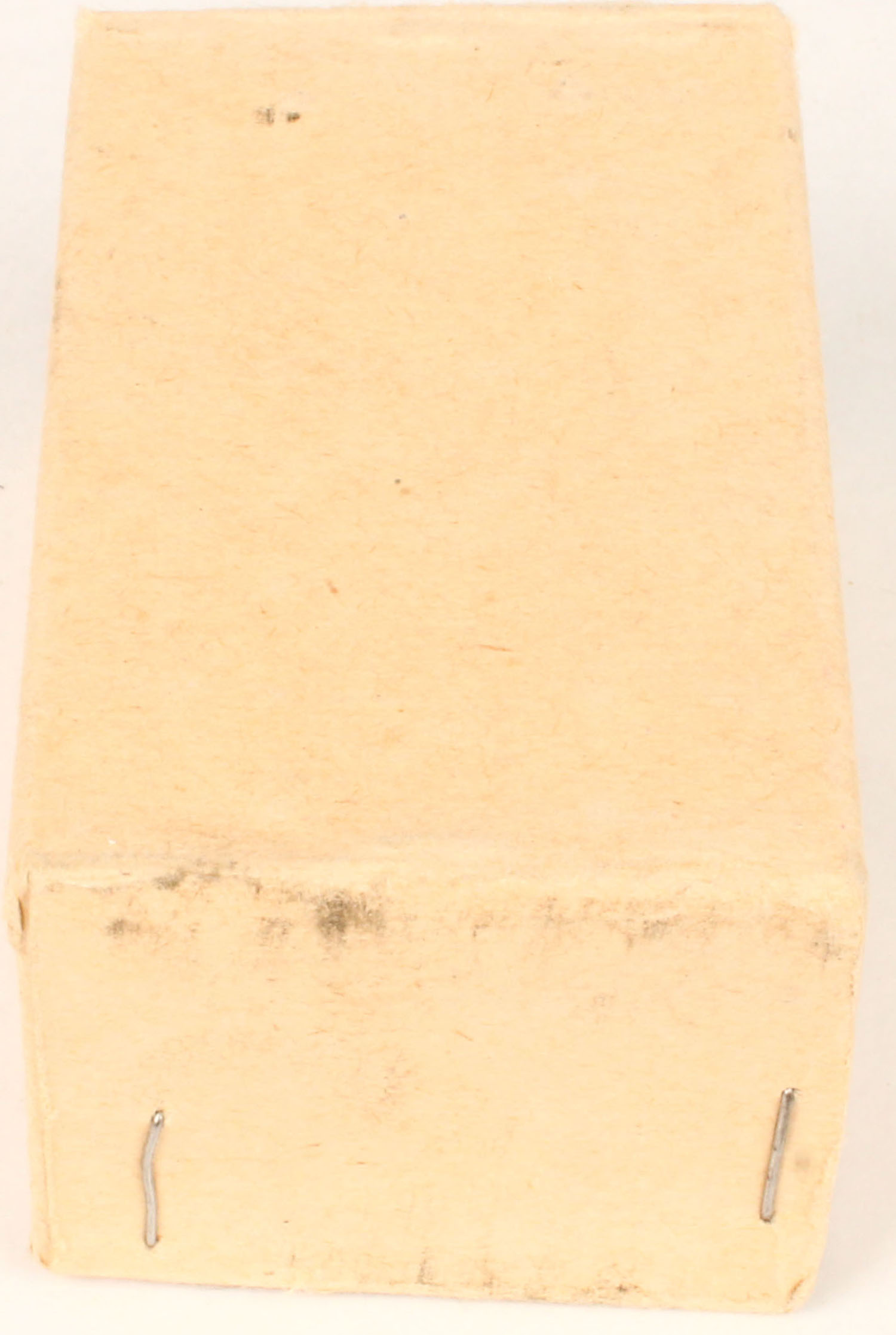Czech, 7.62 Tokarev on clips, 1pc, Full, buff box with buff label & black print, box is solid with label torn off, handling wear & rub marks, ammo is excellent. Grade: Very Good + - Value: 10 to 30
