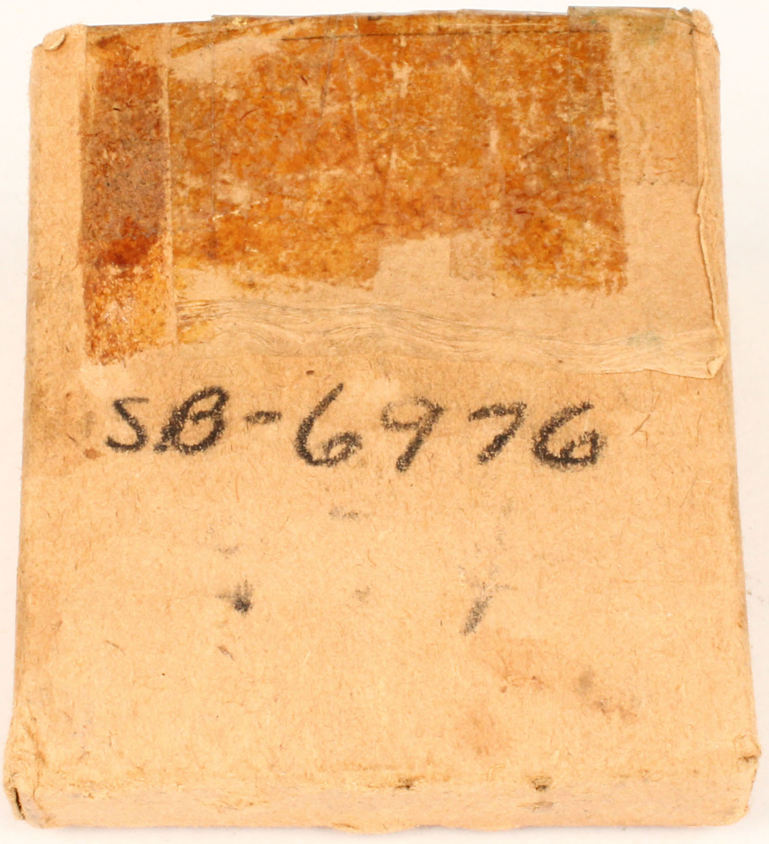 Unknown, Faded label, 7.62x54mmR yellow tip, 1pc, Full 15 Rds., brown box with buff label & black print, box is solid with faded label pen marks, rub wear & handling wear, ammo is very good. Grade: Very Good + - Value: 10 to 40