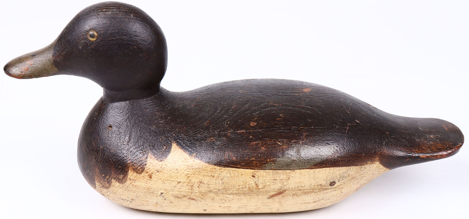 Bluebill Drake by Mason Decoy Company or Hays Decoy Factory, Detroit, MI,1896-1924 standard grade, glass eyes, solid