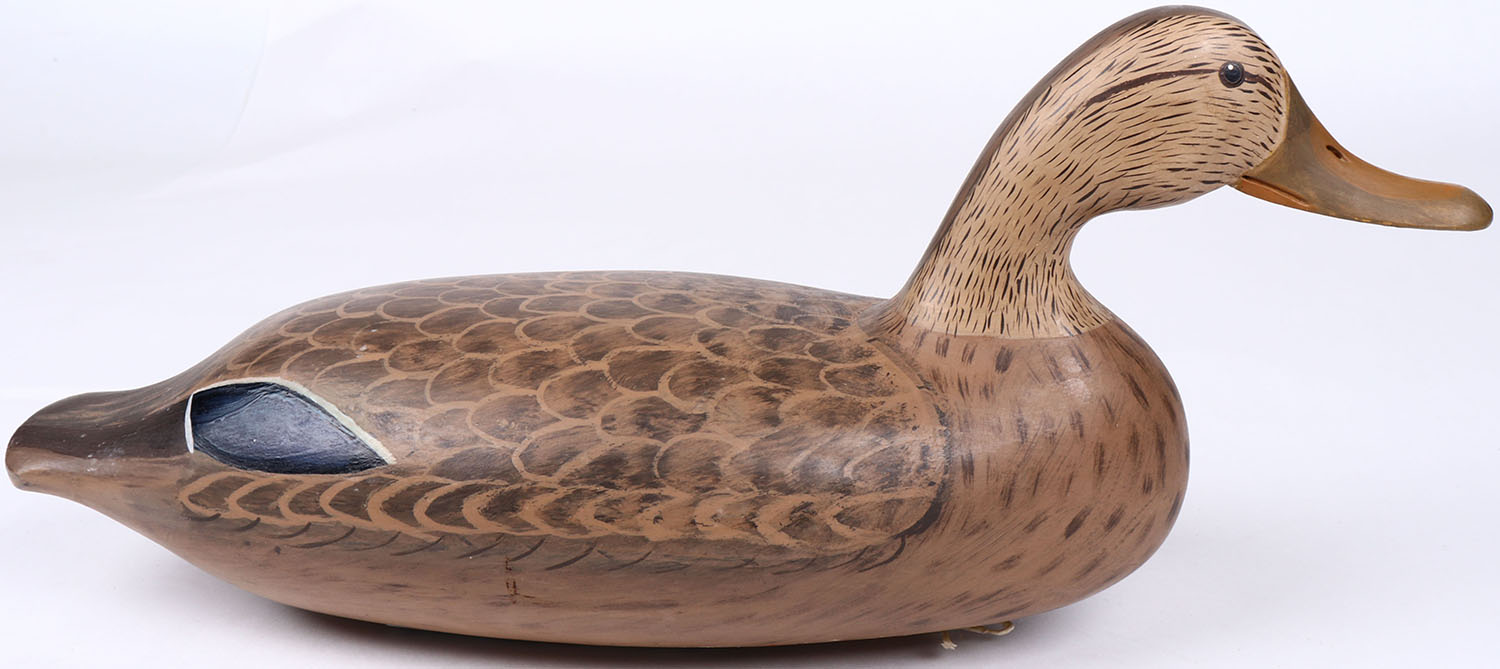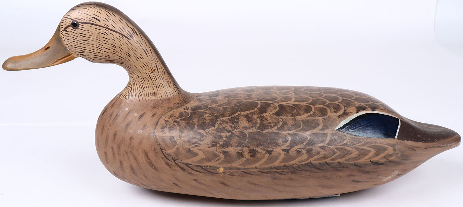 Mallard Hen by Robert G. Litzenberg, Eldton, MD, painted eyes, solid wood, repainted, structurally excellent. Grade: MINT - Value: 50 to 100