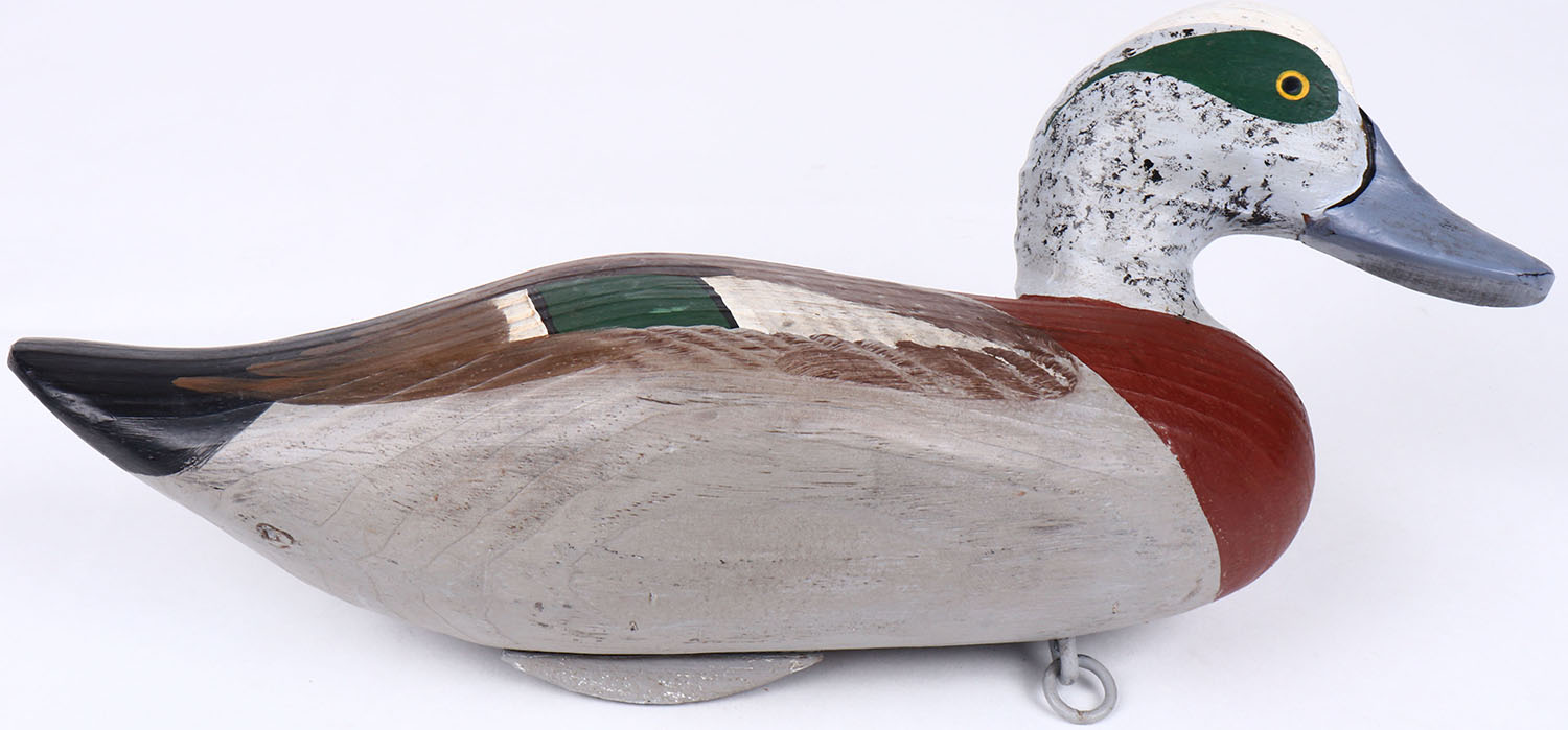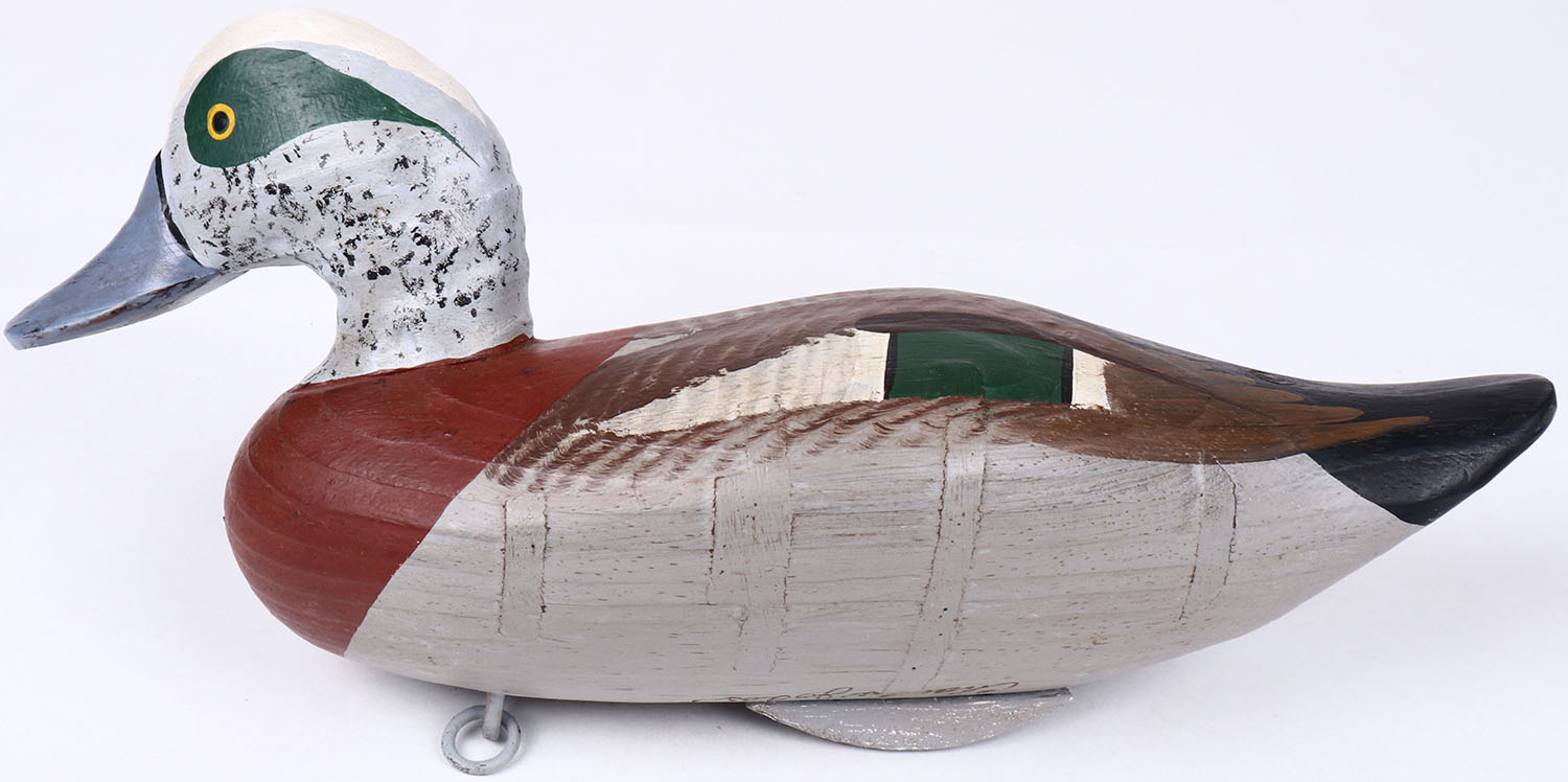 Widgeon Drake by Charles Jobes, Havre de Grace, MD, painted eyes, solid wood, original paint, structurally excellent. Grade: MINT - Value: 50 to 100