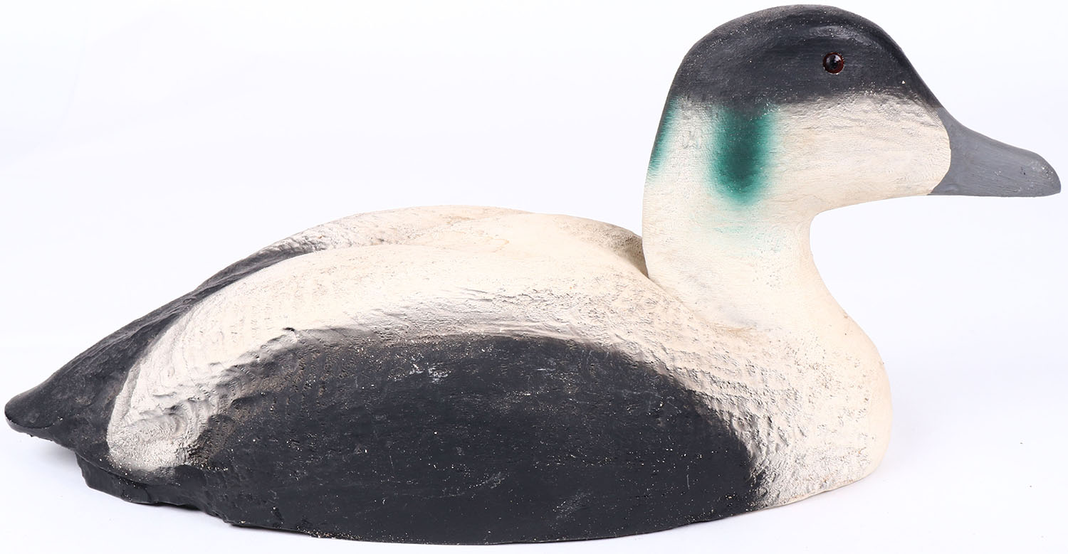 Eider by Herter's Inc, glass eyes, hollow wood, original paint, structurally excellent, branded HERTER'S INC. on bottom. Grade: MINT - Value: 40 to 80