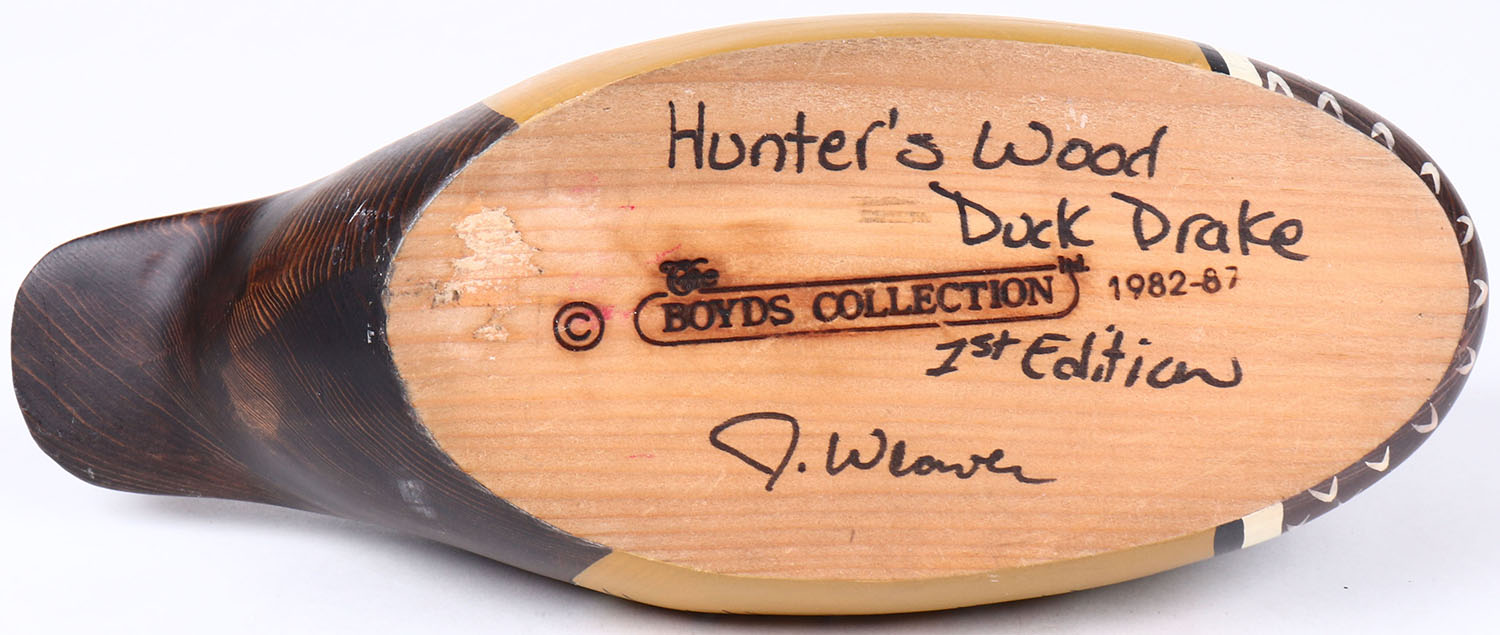 Woodduck Drake by The Boyds Collection, glass eyes, solid wood, structurally excellent, signed and stamped on bottom, original paint. Grade: MINT - Value: 10 to 30