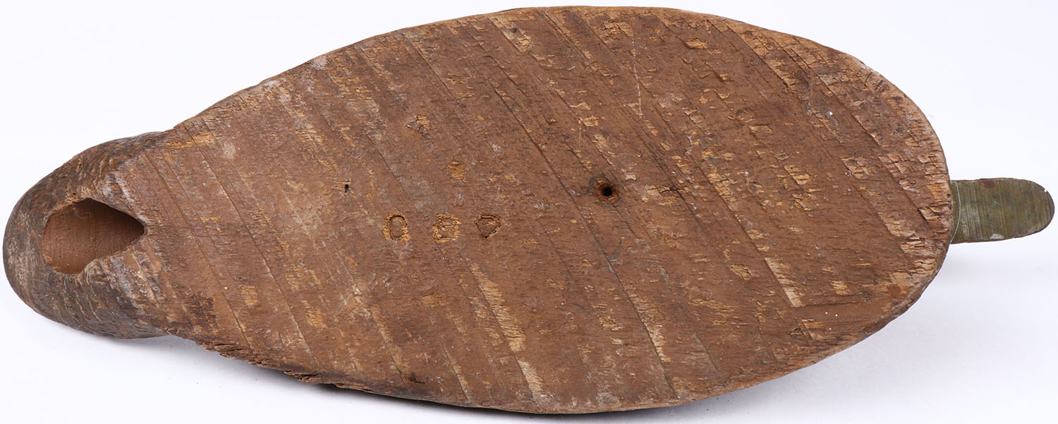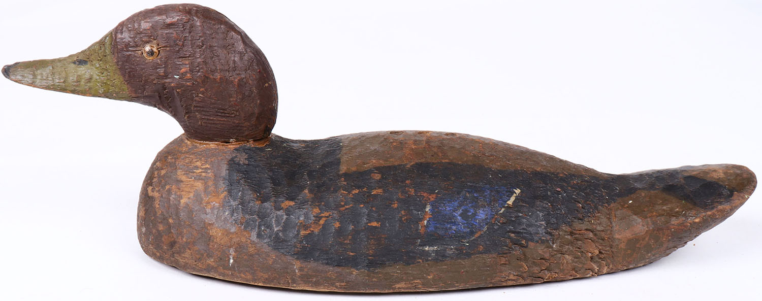Black Duck by unknown factory, glass eyes, hollow wood, original paint, structurally excellent. Grade: Excellent - Value: 10 to 20