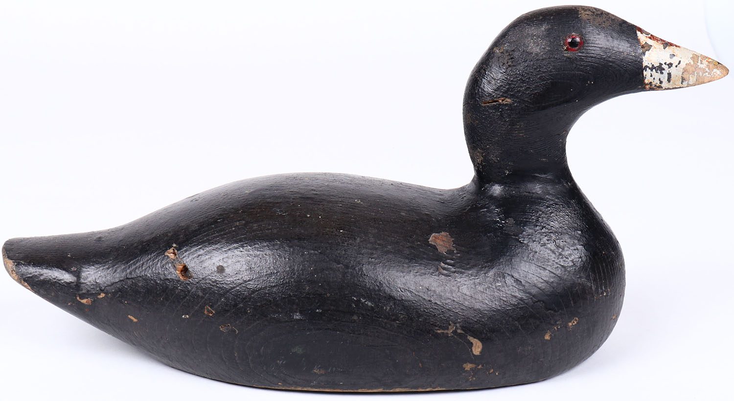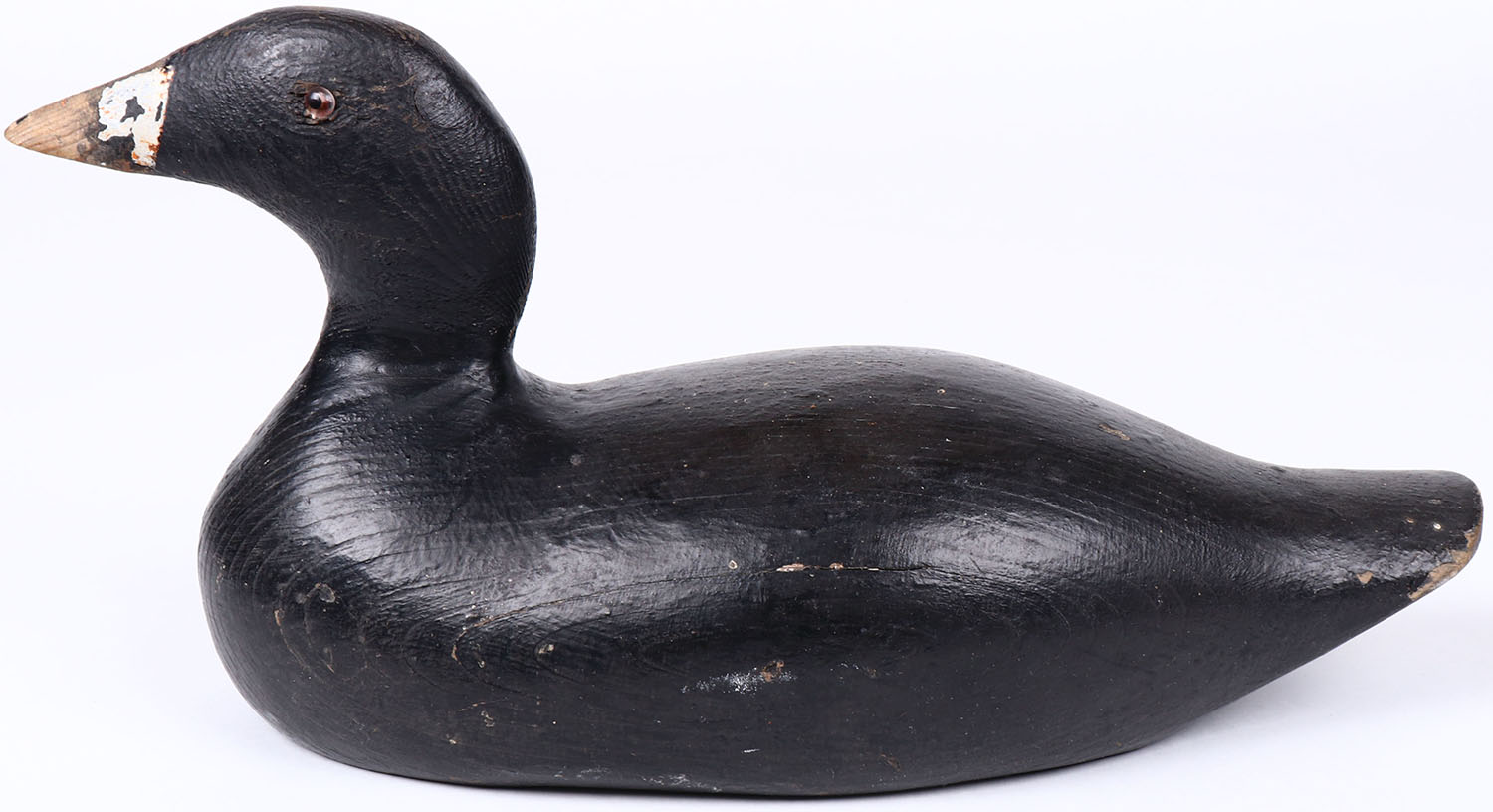 Coot by Pratt Decoys, glass eyes, solid wood, structurally excellent, original paint with typical wear, signed on bottom. Grade: Excellent - Value: 50 to 100