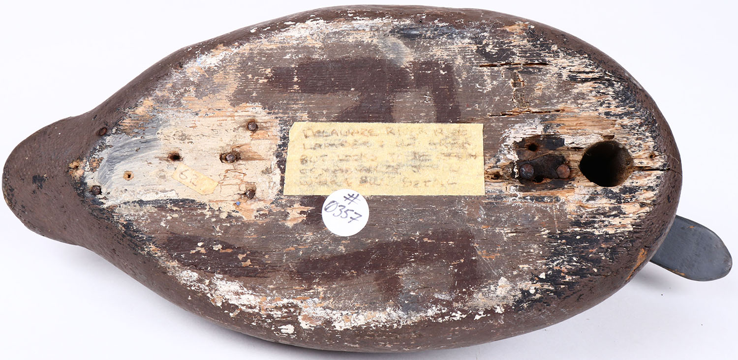 Bluebill Hen by unknown maker, glass eyes, solid wood, original paint, head is loose. Grade: Excellent - Value: 20 to 40