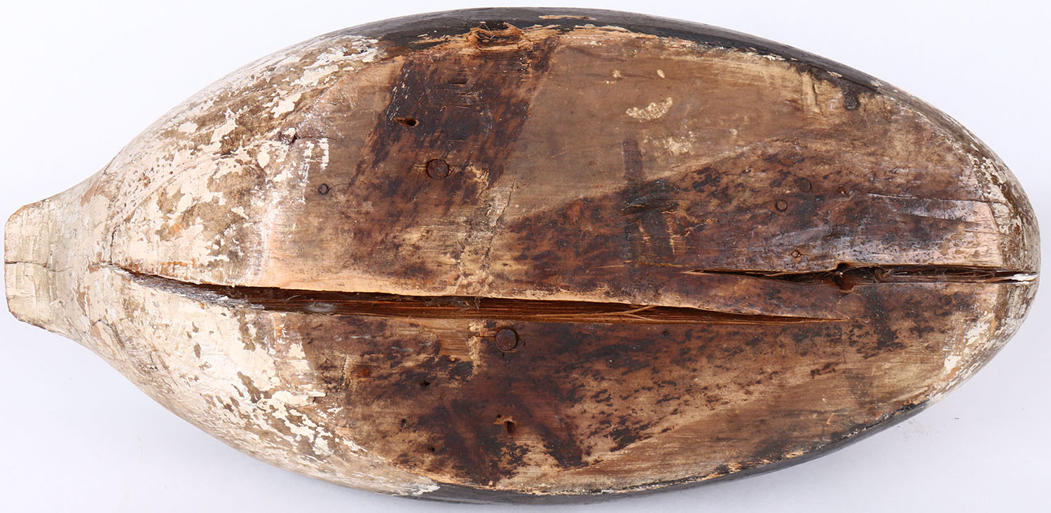 Canada Goose by unknown maker, painted eyes, hollow wood, , original paint, has age cracks on body, original paint. Grade: Very Good ++ - Value: 50 to 100