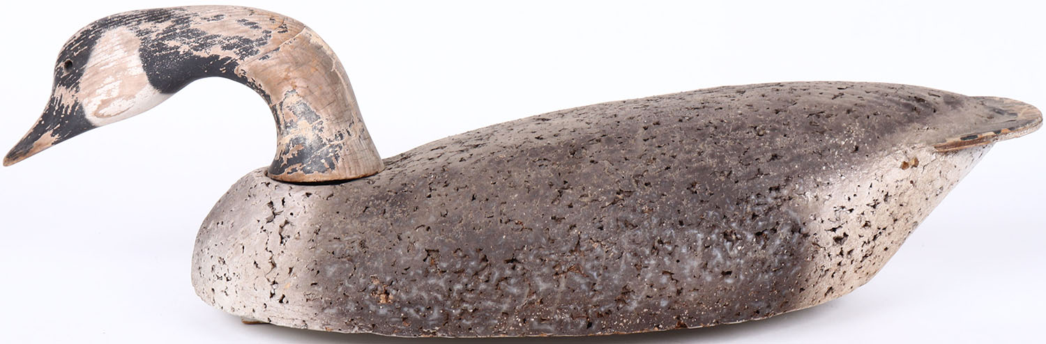 Canada Goose by unknown maker, no eyes, solid cork, head comes completely off, original paint. Grade: Excellent - Value: 20 to 50
