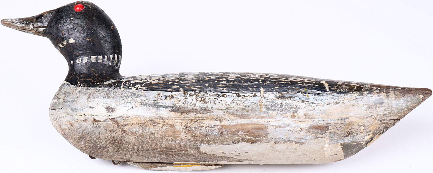 Loon by unknown maker, painted eyes, hollow wood, original paint, structurally excellent. Grade: Excellent - Value: 50 to 150