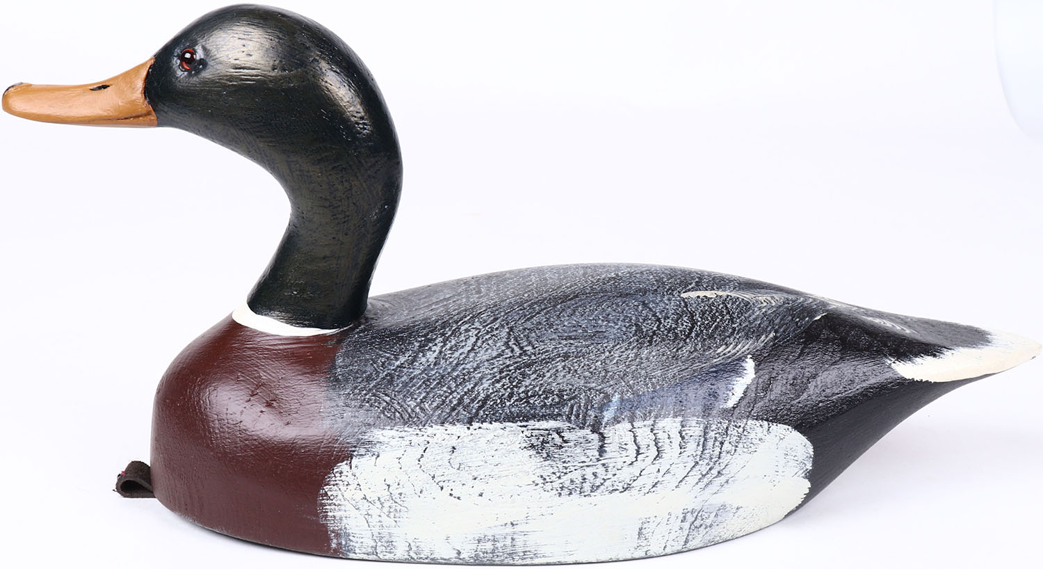 Mallard Drake by Tom Martindale, Ontario, Canada, glass eyes, solid wood, structurally excellent, branded TM on bottom and signed, original paint. Grade: MINT - Value: 50 to 100