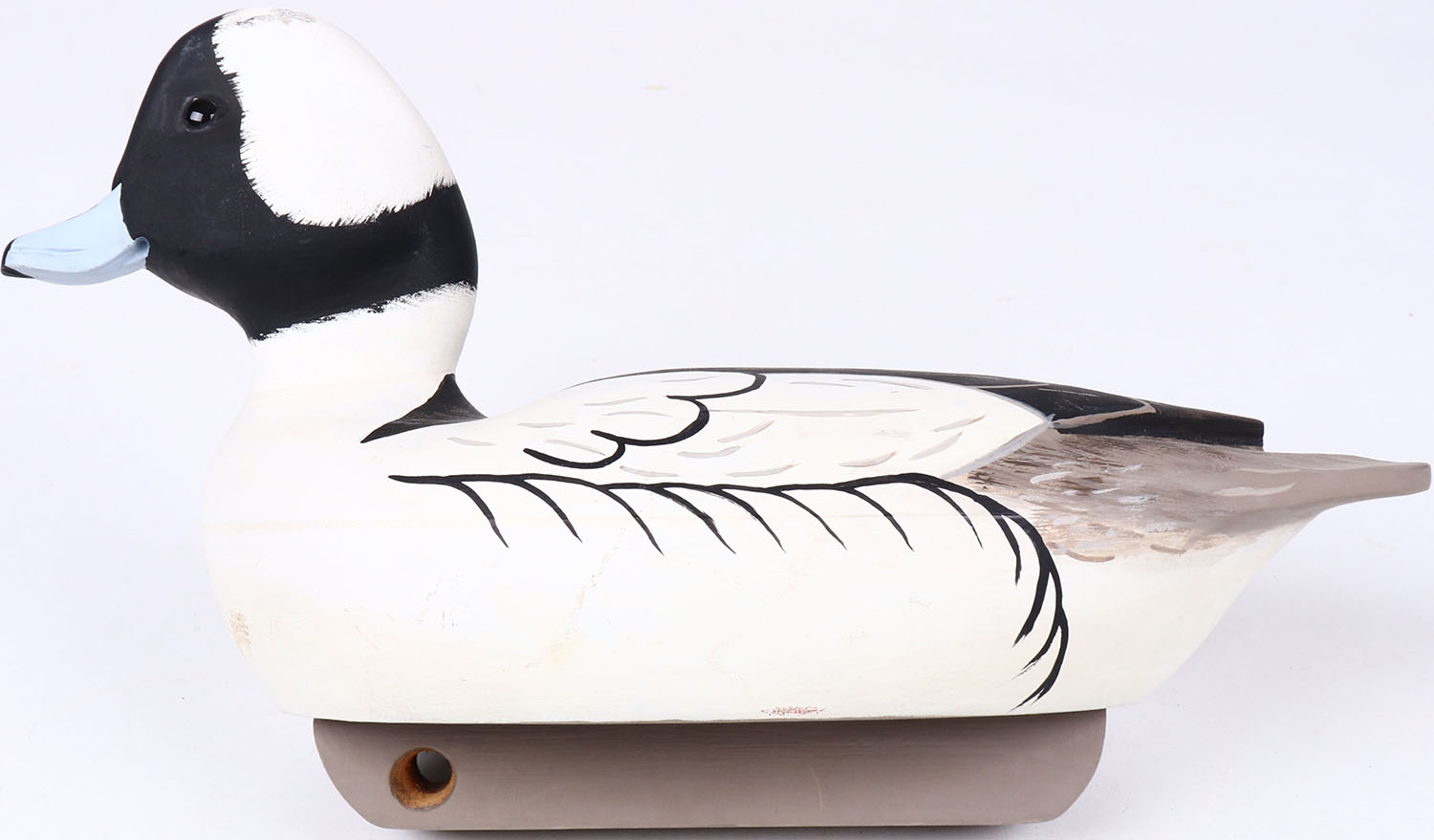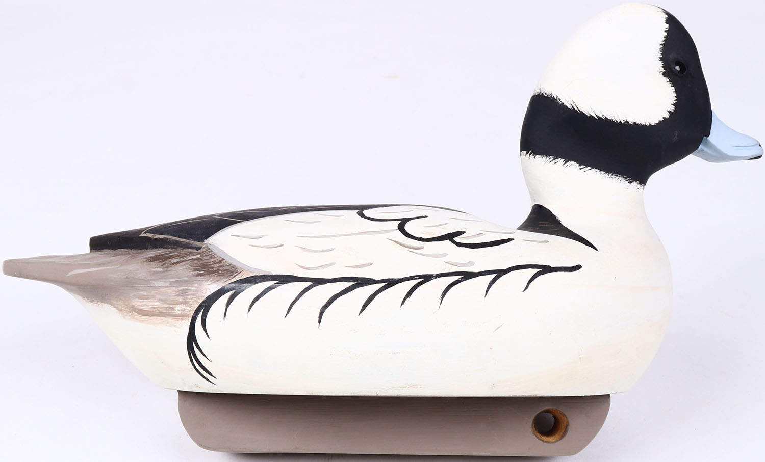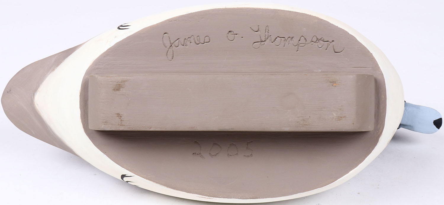 Bufflehead Drake by James O. Thompson, glass eyes, hollow wood, original paint, structurally excellent, signed on body. Grade: MINT - Value: 40 to 80