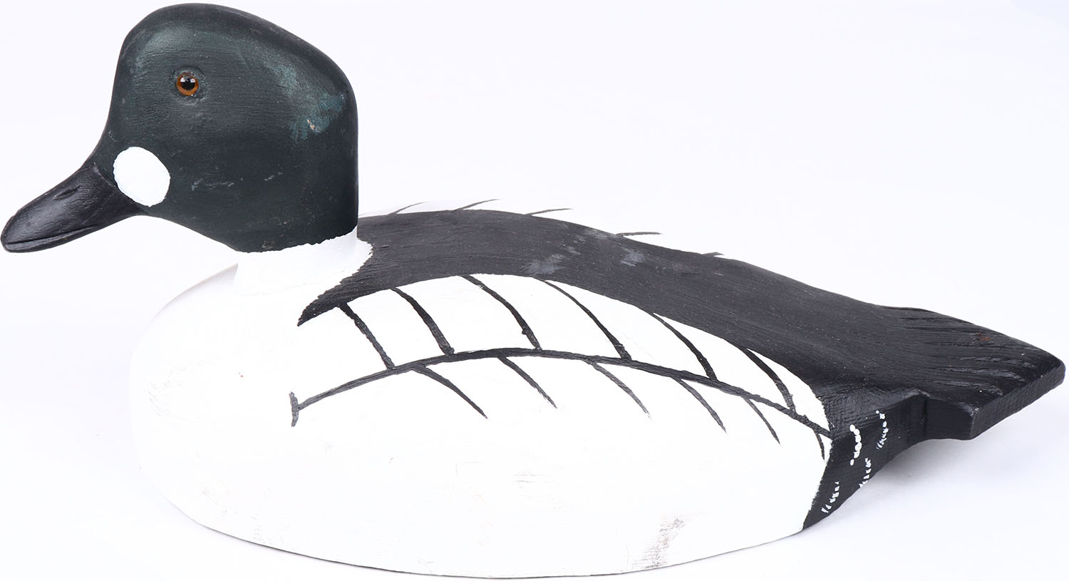 Goldeneye Drake by Maynard Caine, Ontario, Canada, glass eyes, solid wood, repainted, structurally excellent, signed on bottom. Grade: Excellent ++ - Value: 40 to 80