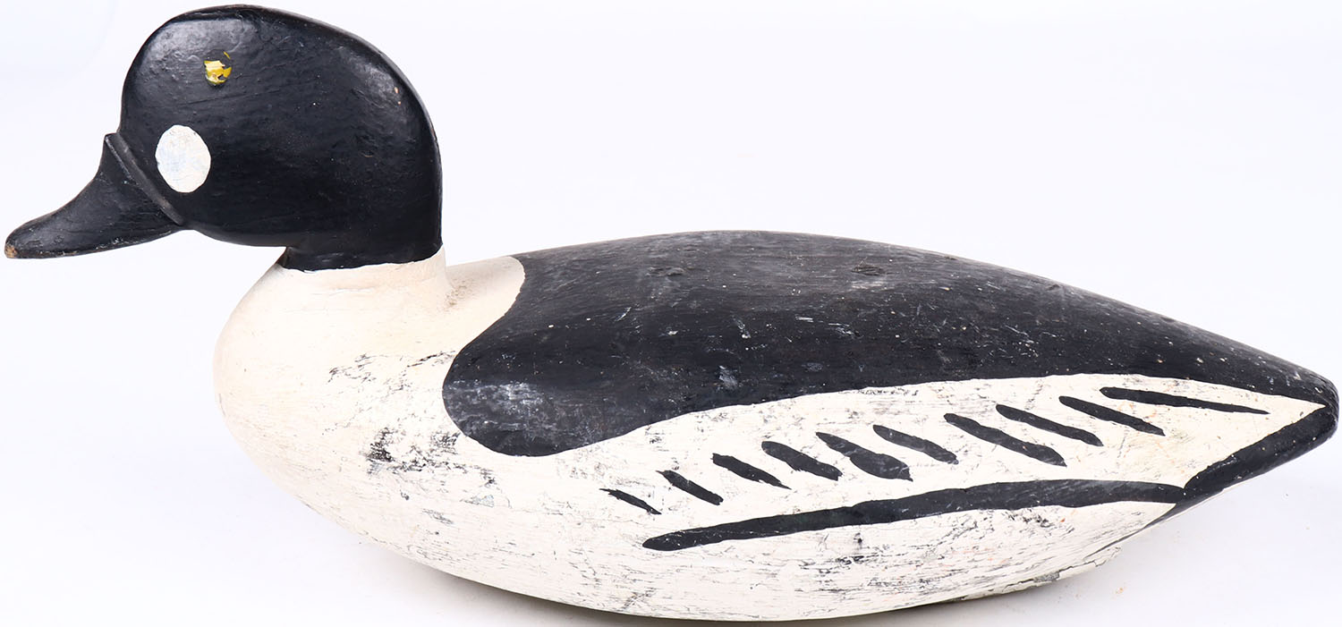 Goldeneye Drake by unknown maker, painted eyes, hollow wood, structurally excellent. Grade: Excellent + - Value: 40 to 80