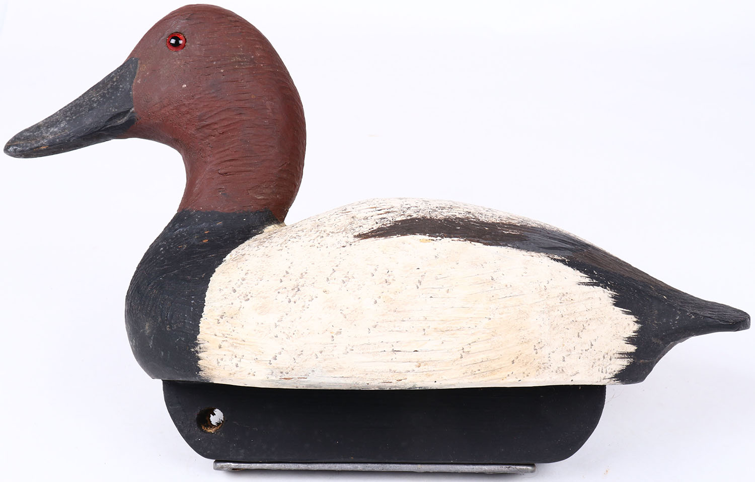 Canvasback Drake by Welsh, glass eyes, hollow wood, original paint, structurally excellent, branded WELSH on bottom. Grade: Excellent ++ - Value: 20 to 40