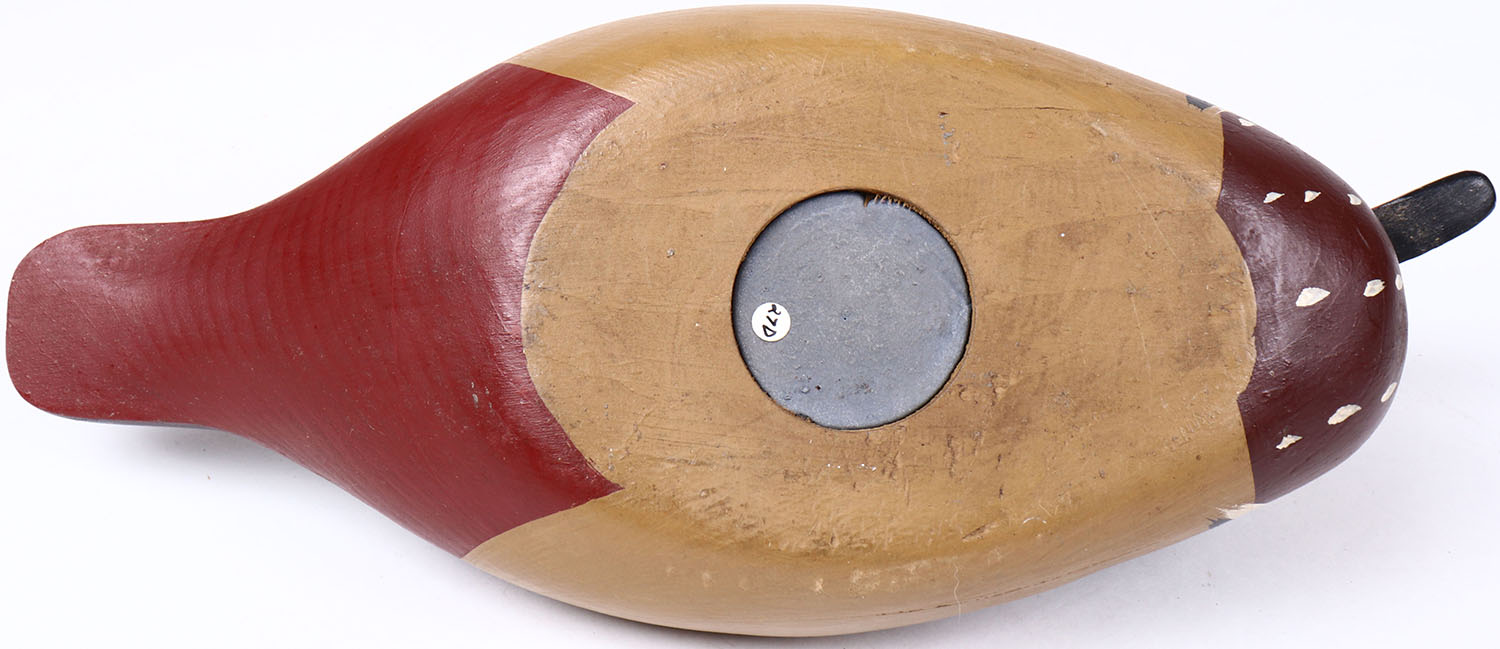 Wood Duck by unknown maker, glass eyes, hollow wood, original paint, structurally excellent. Grade: Excellent ++ - Value: 40 to 80