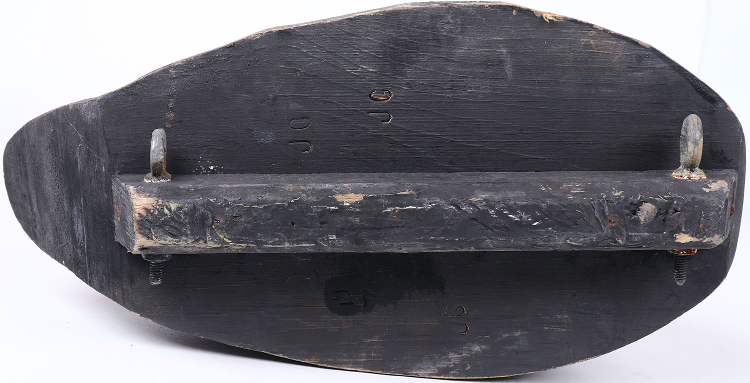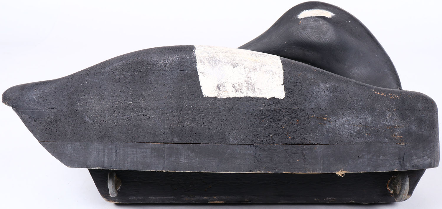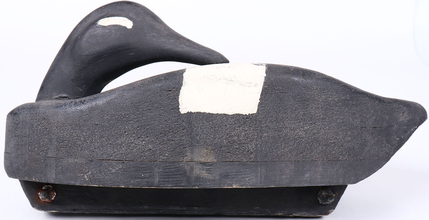 Sleeping Goose by unknown maker, painted eyes, hollow wood, original paint, structurally excellent, branded JG on bottom. Grade: Excellent + - Value: 20 to 60