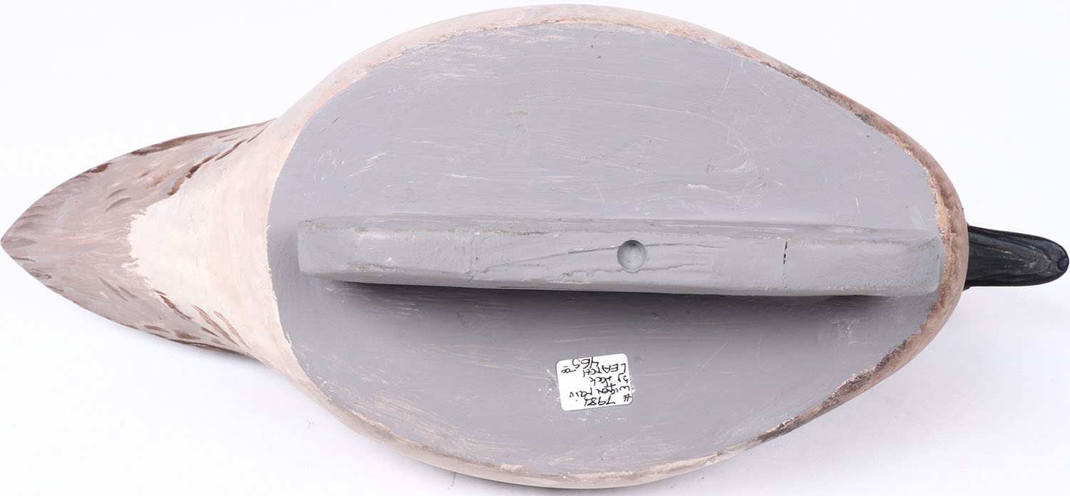 Widgeon by Jack Leach, Tacoma WA, glass eyes, hollow wood, original paint, structurally excellent, signed and branded on bottom. Grade: MINT - Value: 70 to 150