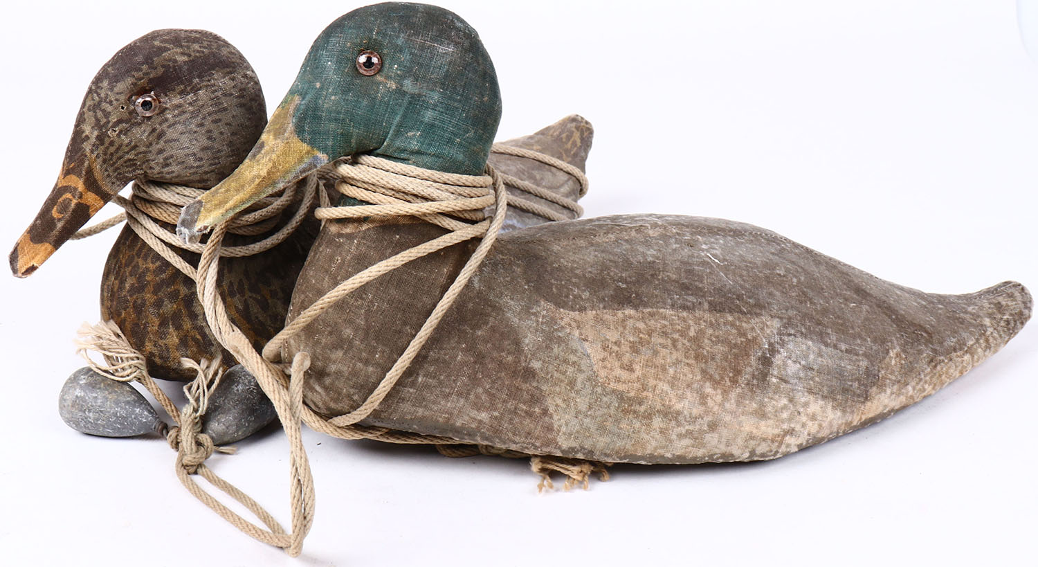 Pair of Mallard by unknown maker, glass eyes, canvas over cork, original paint, structurally excellent. Grade: Excellent ++ - Value: 30 to 50