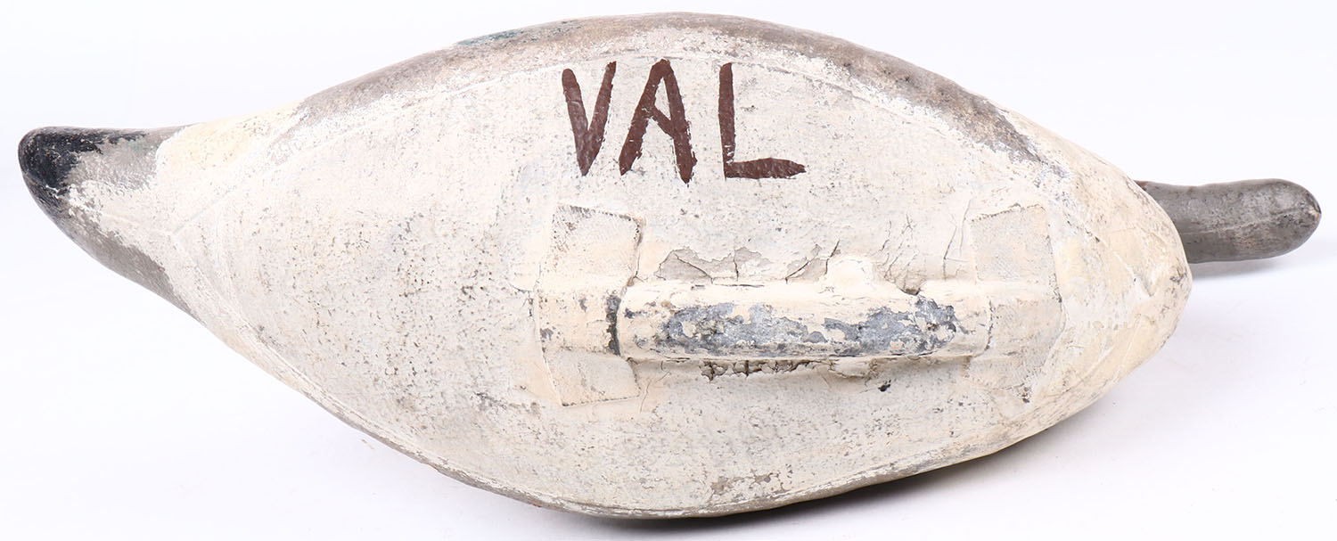 Pintail Drake by Scotts, glass eyes, canvas over cork, branded VAL on bottom, structurally excellent. Grade: Excellent + - Value: 20 to 40