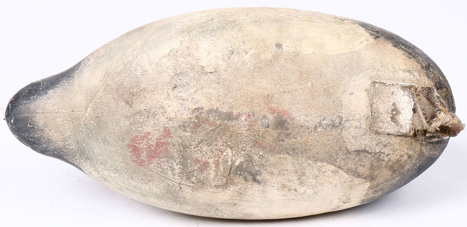 Canvasback Drake by unknown maker, glass eyes, canvas over cork, original paint, structurally excellent. Grade: Excellent + - Value: 20 to 40