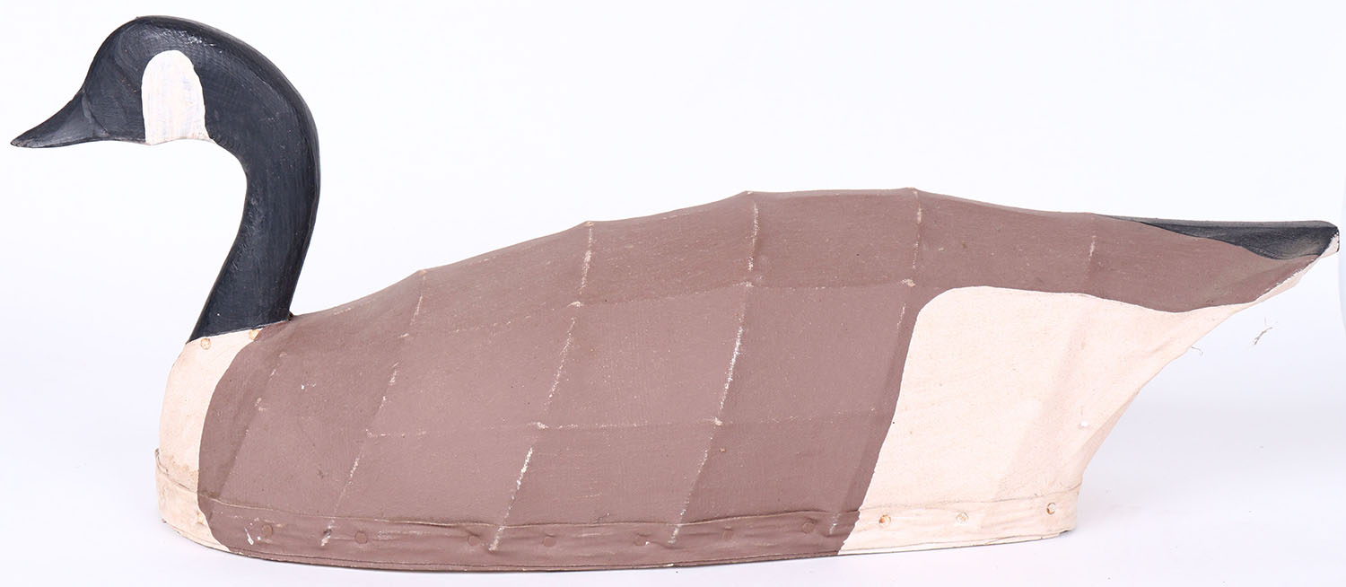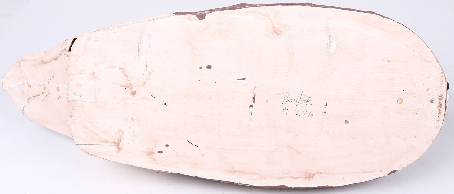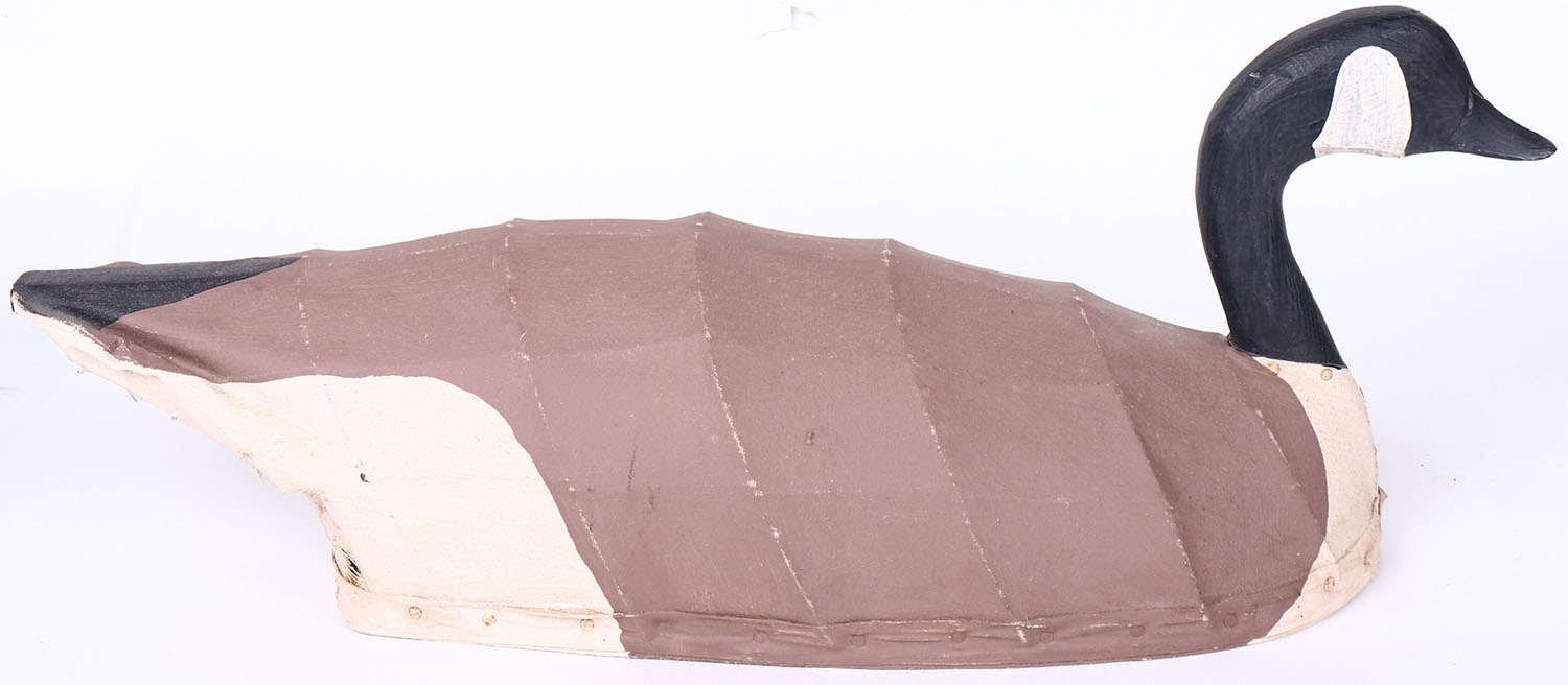 Canada Goose by Ron Vide, NC, painted eyes, canvas over wire with wood base, original paint, structurally excellent, signed on bottom. Grade: Excellent ++ - Value: 30 to 60