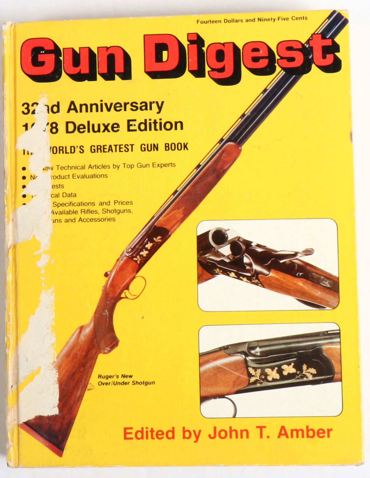 Gun Digest 32nd Anniversary 1978 Deluxe Edition by John T. Amber, 8 1/2'' x 11''. 67 pages, pages clean, binding is loose. Value: $90 Grade: Very Good ++ - Value: 2 to 100