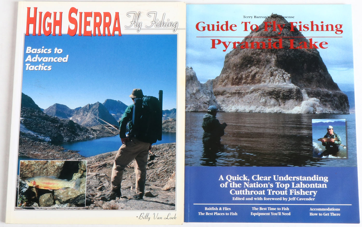 Lot of 2 Fly fishing books: (1) High Sierra Fly Fishing by Billy Van Loek, 8 1/2'' x 11''. (1) Terry Barron's No Nonsense Guide To Fly Fishing 1998, 8 1/2'' x 11''. Both softcovers excellent, pages clean, bindings tight. Grade: Excellent - Value: 2 to 60