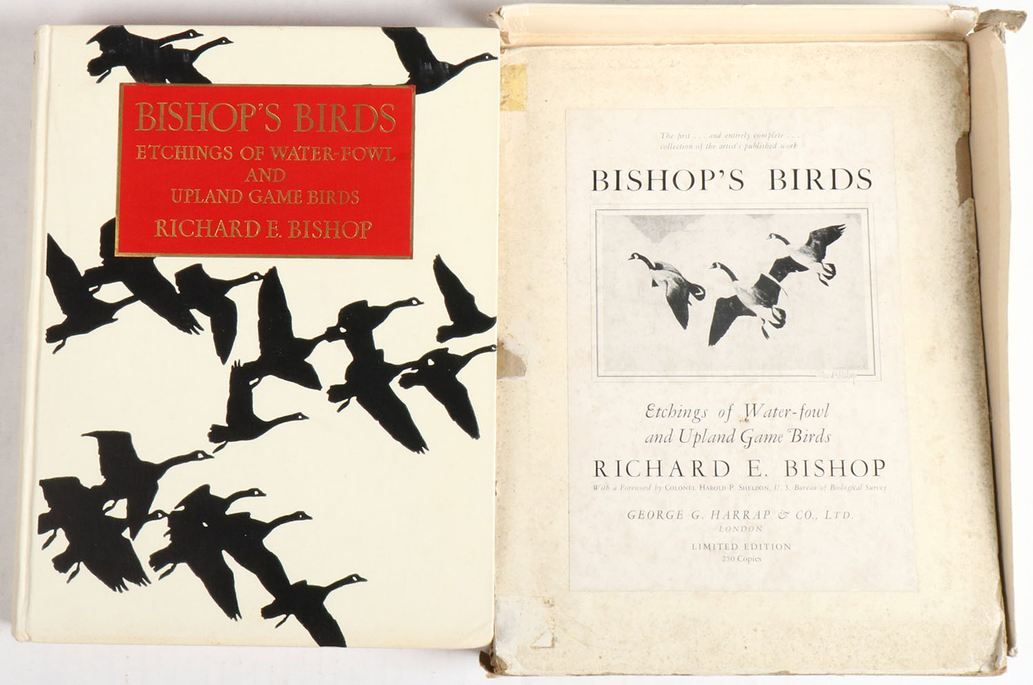 Bishop's Birds: Etchings of Water-Fowl and Upland Game Birds by Richard Bishop 1936, copy No. 88, 9 1/2'' x 12''. Pages clean, binding tight, hardcover excellent. Value: $500 Grade: Excellent + - Value: 10 to 100