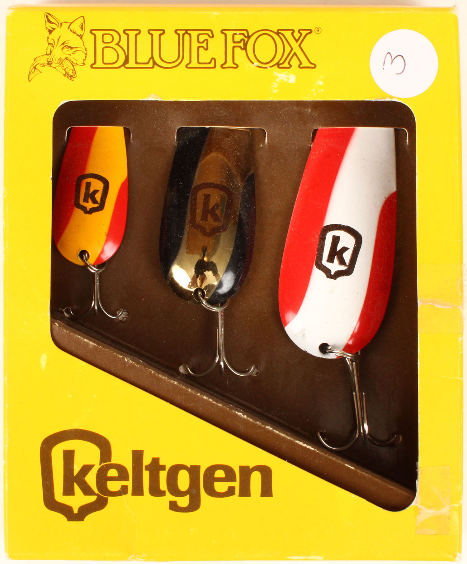Lot of 3 Blue Fox spoons in orignal case. Grade: MINT - Value: 4 to 40