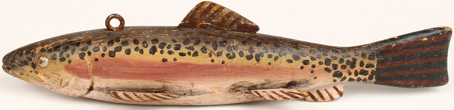 Unmarked Ice Fishing Decoy, TE, 1 line ties, has 6 metal fins, 8'' OAL. Grade: Excellent - Value: 10 to 60