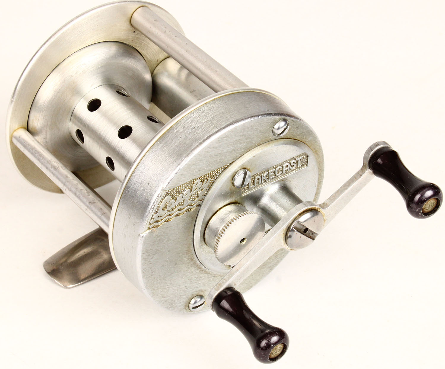 | Langley Lakecast Reel, dual black handle, strong click. Grade: E...