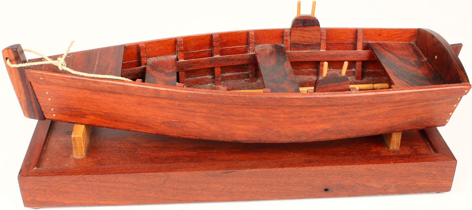 Tom Wacko Rosewood handcrafted boat & oars on wood stand. Grade: MINT - Value: 20 to 200