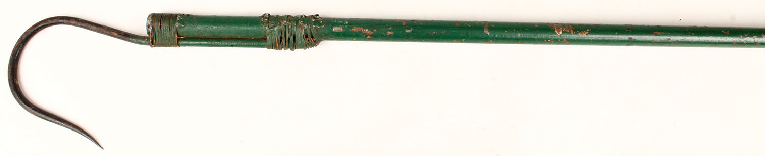 Unmarked fishing gaff, wood handle, 44'' long. Grade: Very Good ++ - Value: 2 to 30
