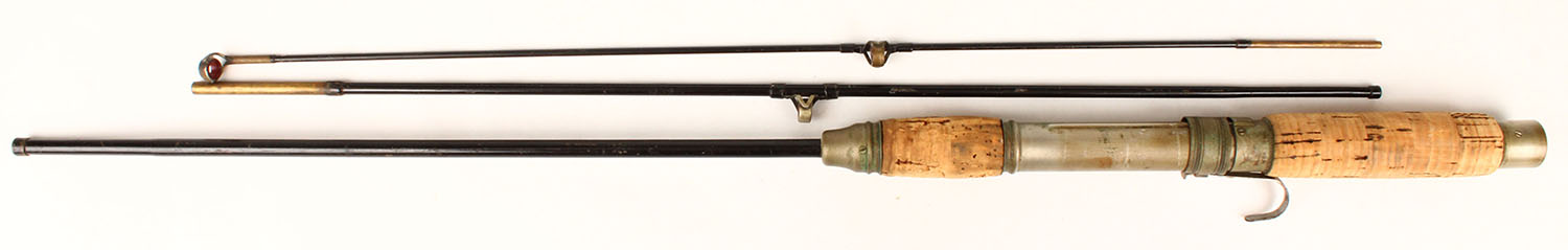 Winchester (marked ''Barney & Berry Inc.'') 3pc. Steel casting rod No. 7503, 5', all orignal and correct length, cork handle is light & in excellent condition, well marked on reel seat, highly collectible condition. Grade: Excellent - Value: 10 to 60