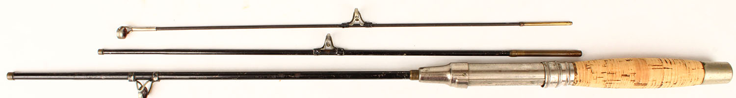 Winchester (marked ''Royal Steel Rod & Co. Simmons Hardware'') 3pc. Steel casting rod No. ????, 5', 10'', all orignal and correct length, cork handle is light & in excellent condition, well marked on reel seat, highly collectible condition. Grade: Excellent - Value: 20 to 60