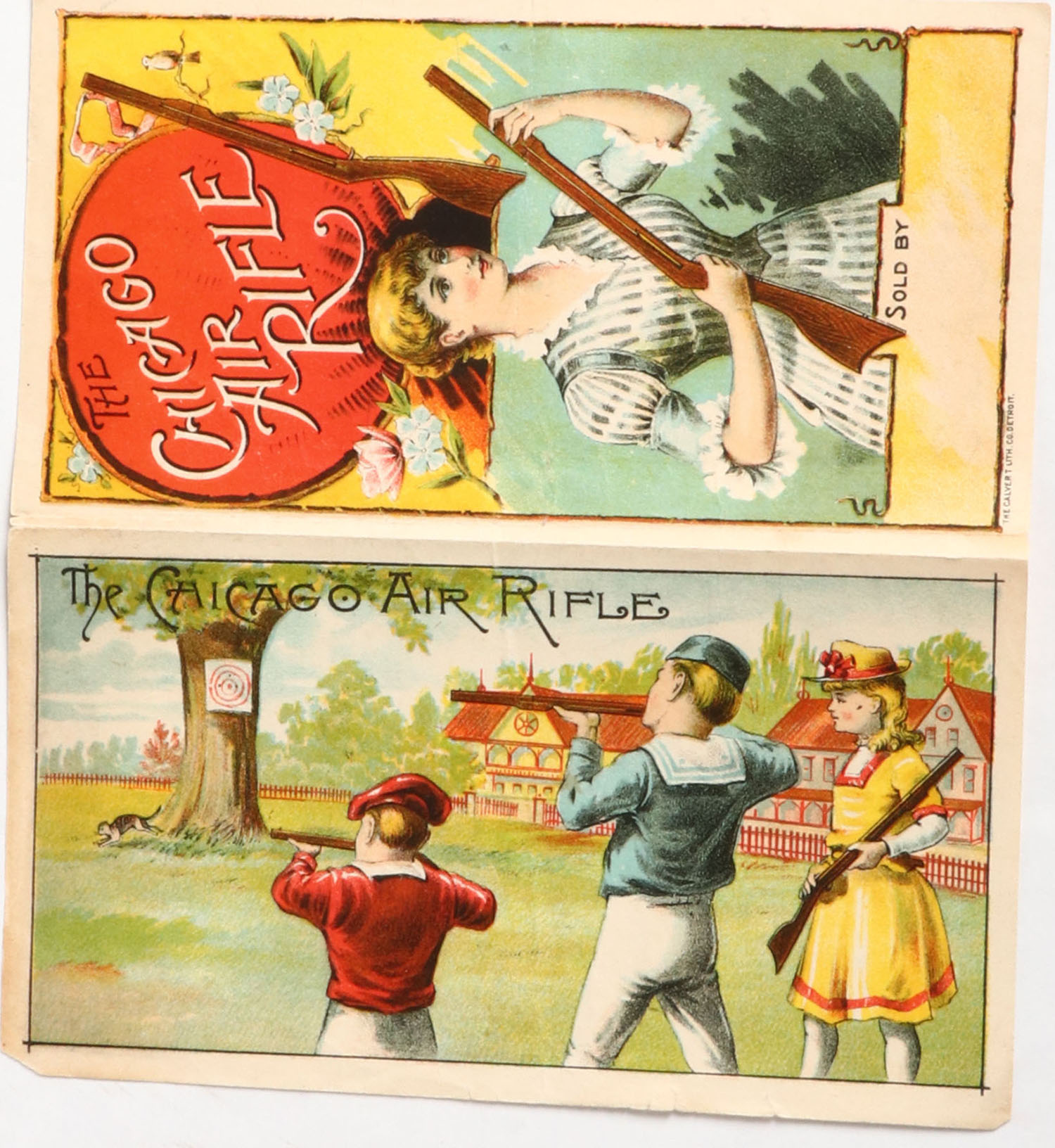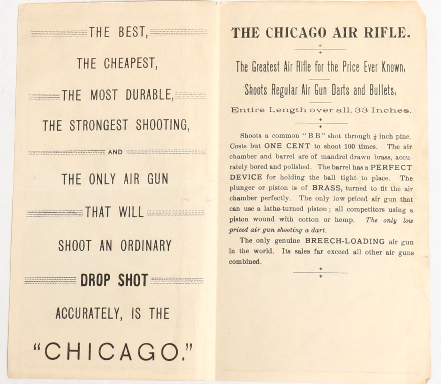 Chicago Air Rifle very colorful brochure, wonderful two sided advertisement. Grade: Excellent - Value: 30 to 250