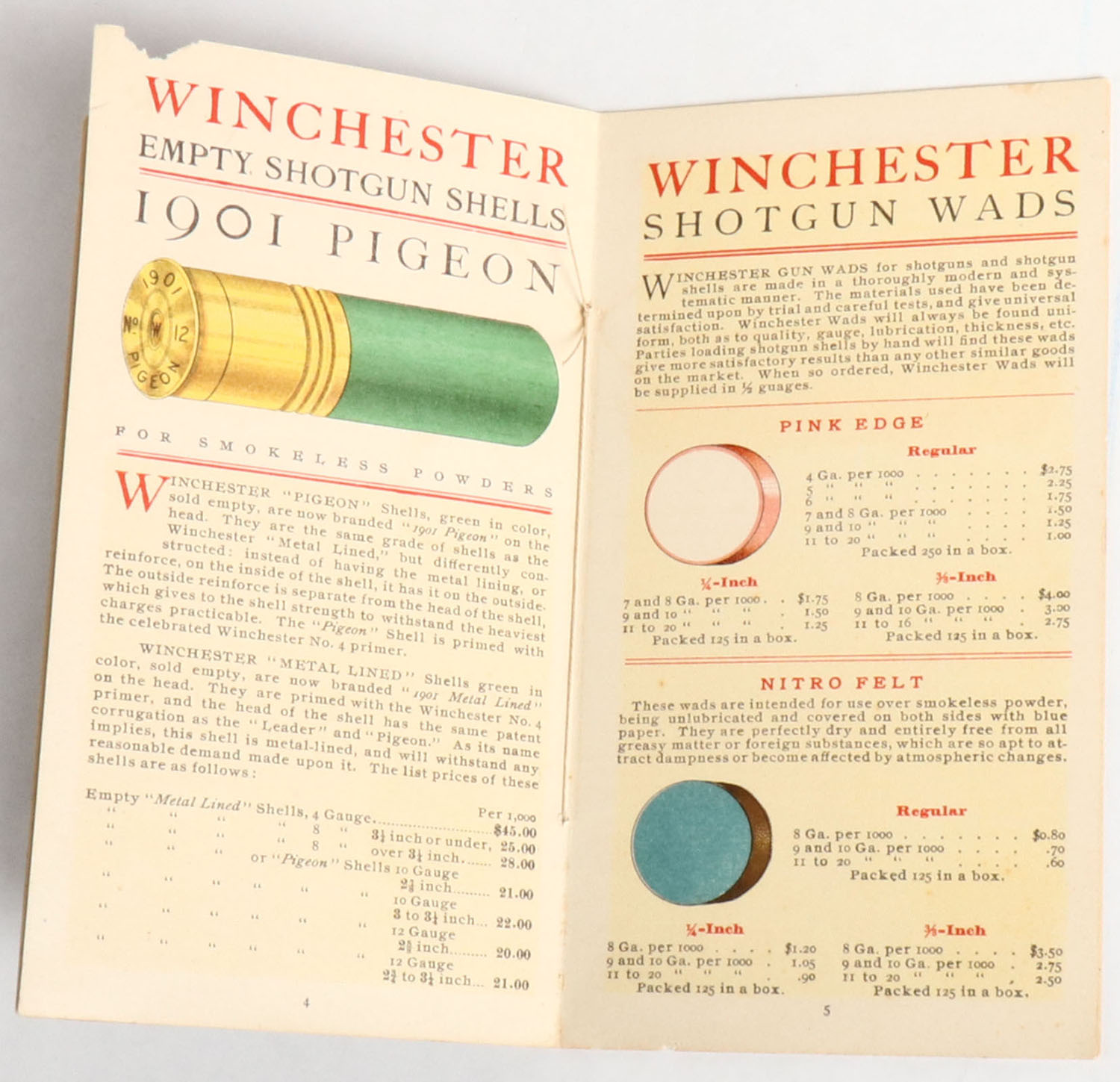 RARE Winchester Empty Shotgun Shells & Gun Wads booklet, inside pages ha wonderful full color images of shotshells, 8 pages, 3 1/2'' x 6''. Grade: Very Good ++ - Value: 40 to 250
