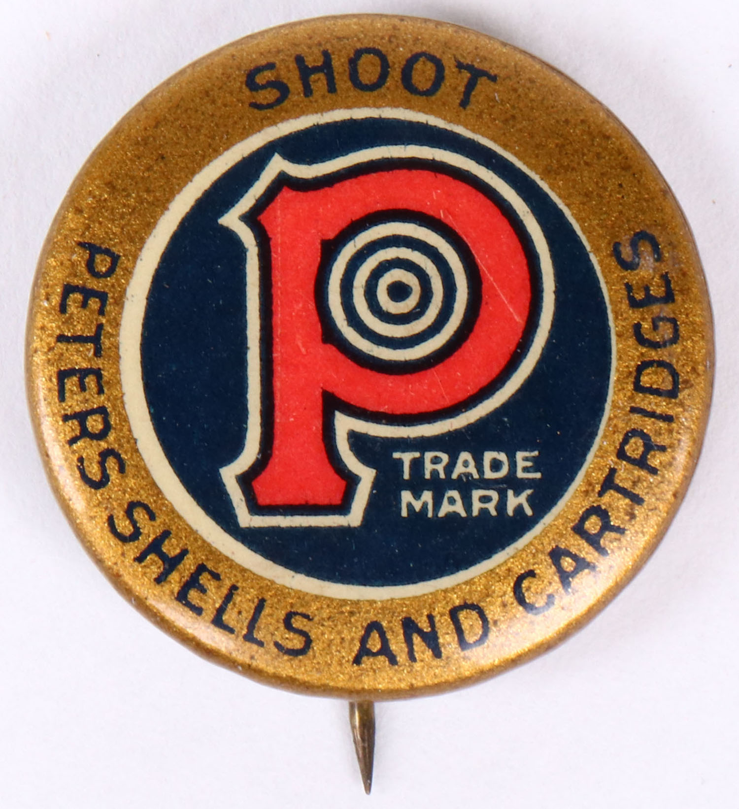 Peters pinback, ''Shoot Peters Shells and Cartridges'', pin has great color, Bastain & Bros. paperback is solid with minor soiling. Grade: Excellent + - Value: 20 to 50
