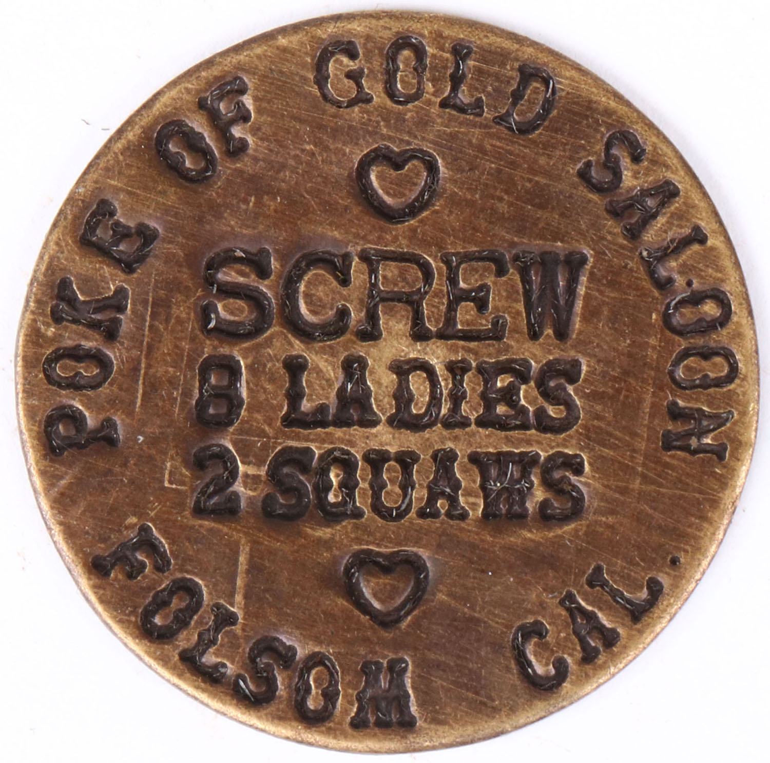 Double sided Brothel Token, Folsom Cal, 1 1/2'' diameter. Grade: Very Good ++ - Value: 20 to 100