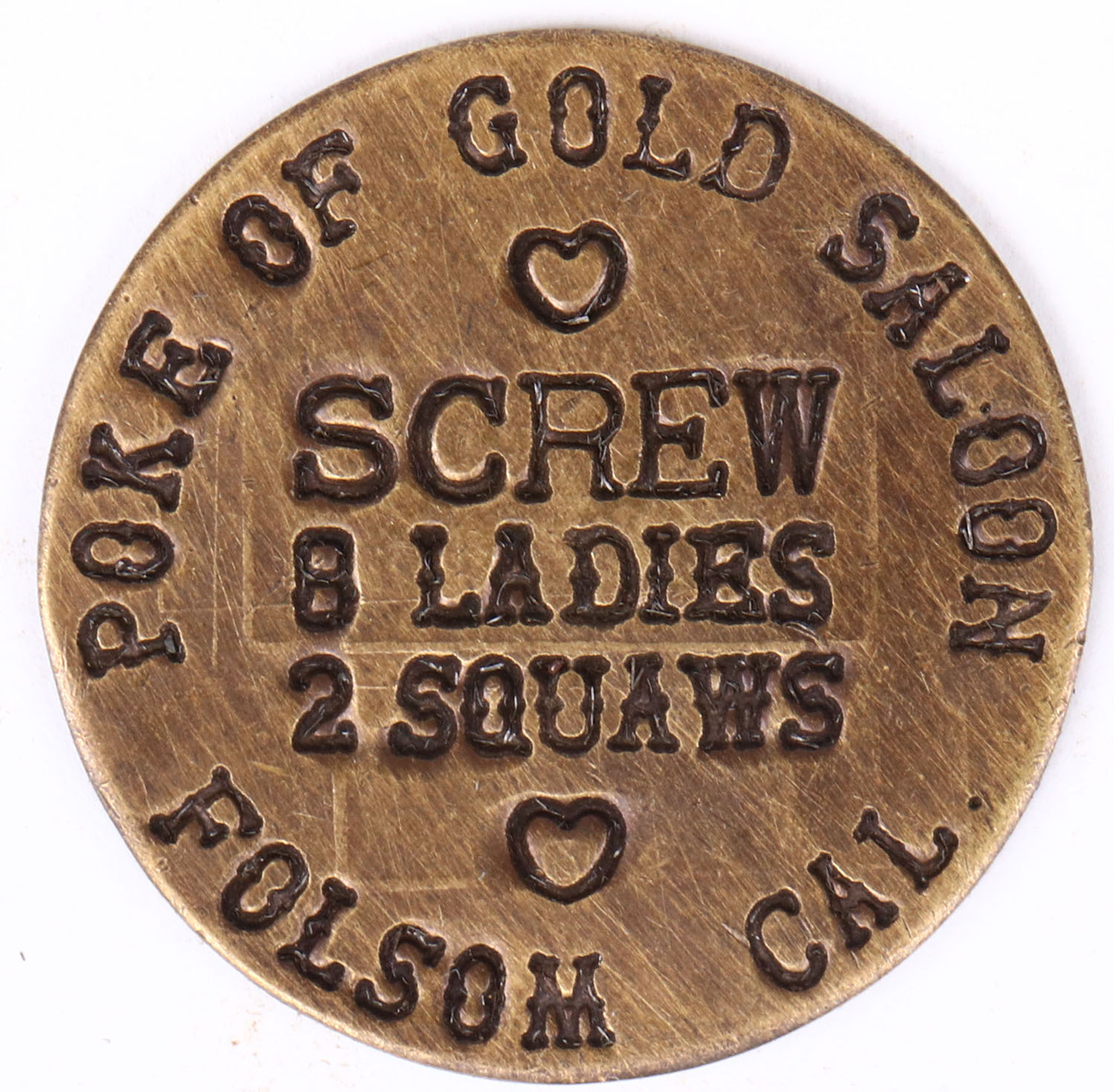 Double sided Brothel Token, Folsom Cal, 1 1/2'' diameter. Grade: Excellent - Value: 20 to 100
