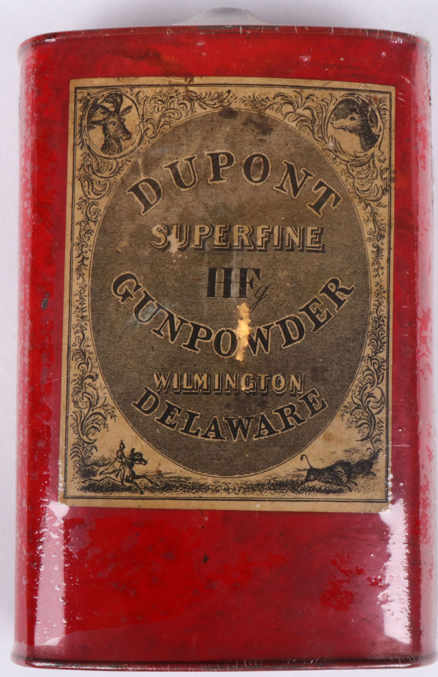 DuPont FFFg Gunpowder tin, Empty, has age soiling Grade: Very Good + - Value: 6 to 60