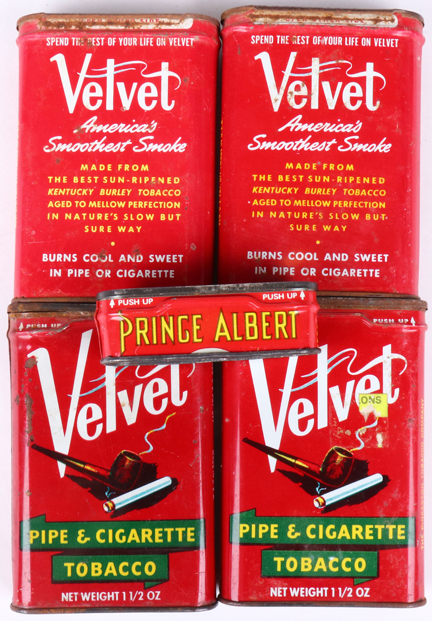 Lot of 5 Prince Albert Tobacco tin. Grade: Very Good ++ - Value: 4 to 60