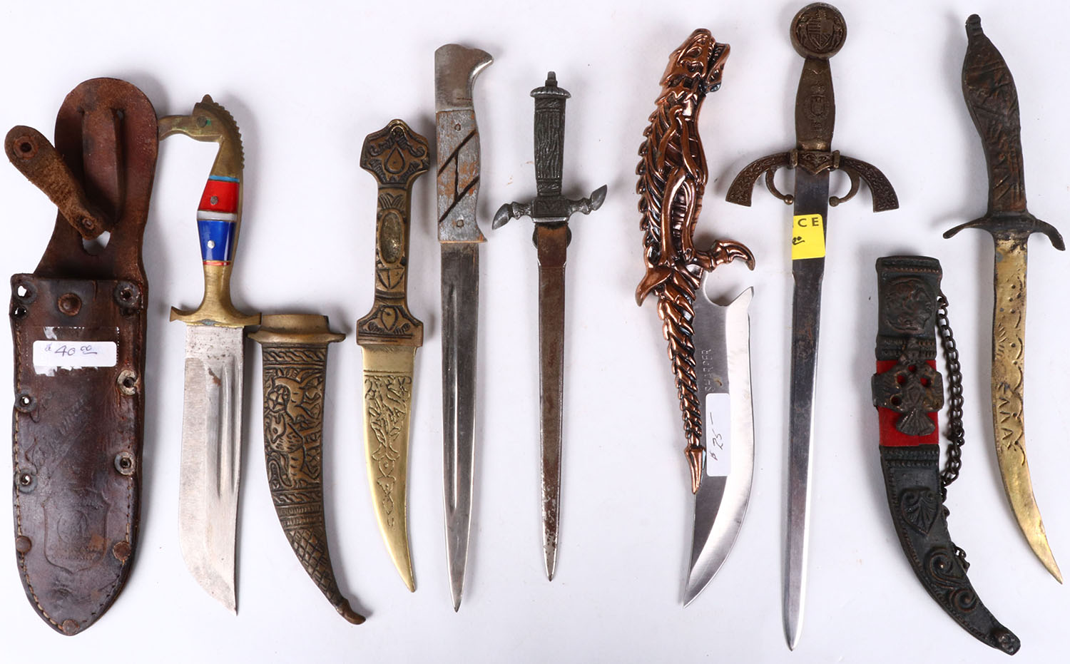 Large lot of small fixed blade knives, all have age soiling. Grade: Very Good - Value: 10 to 100