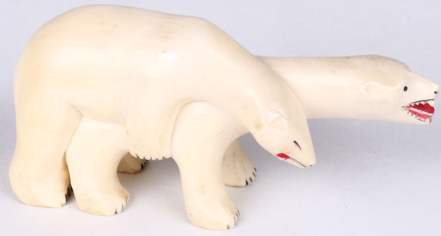 4'' OAL carved bone ''Happy Bears''. Grade: Excellent - Value: 50 to 250