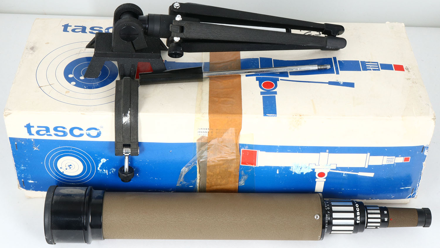 Tasco 18E spotting scope, 20x-60x60mm, in orignal case. Grade: Very Good + - Value: 20 to 200
