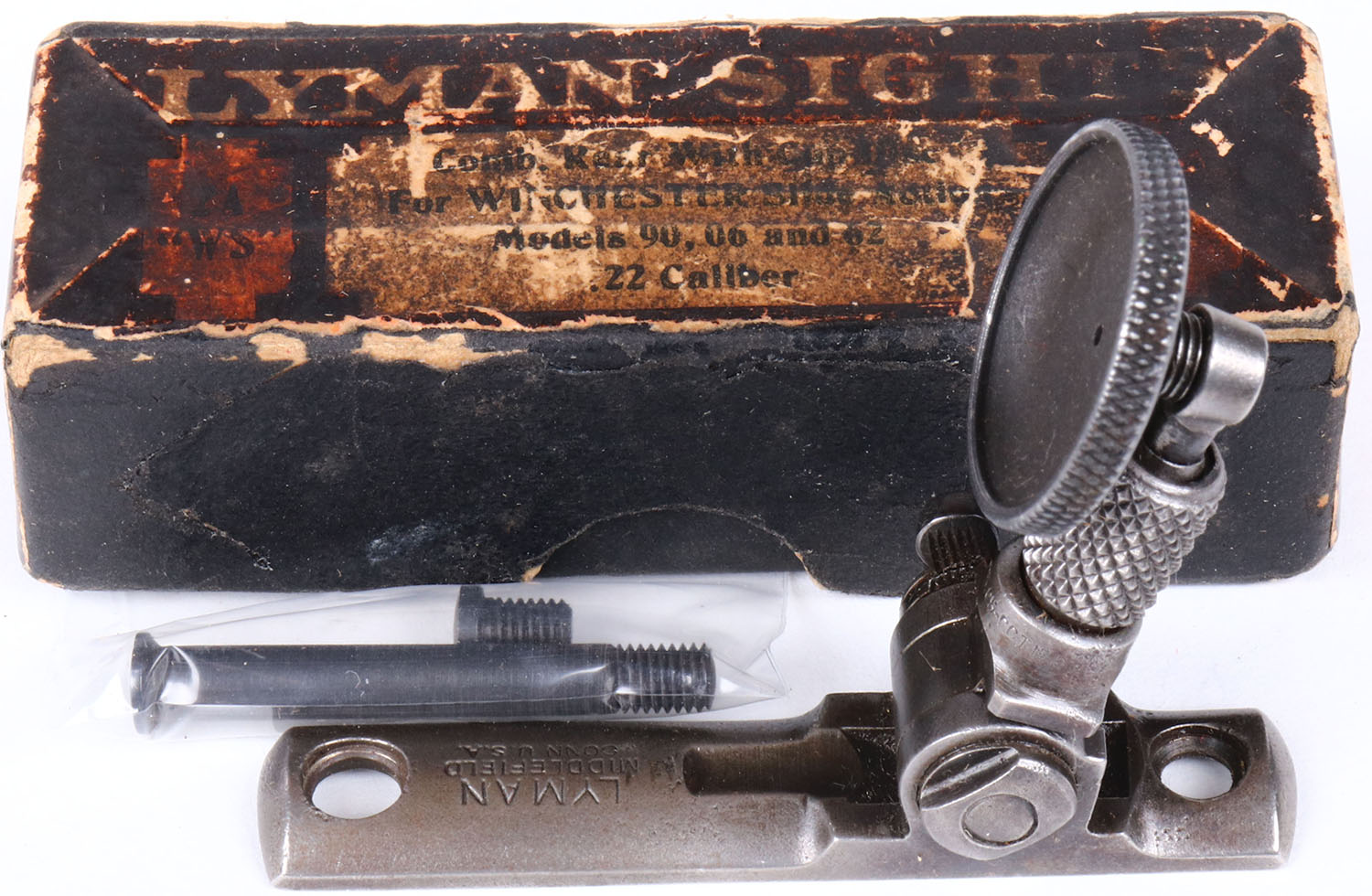 Lyman Tang sight No. 2A WS for Win 1890, 90 & 06, in orignal box with large disk aperture, scres & direction sheet. Grade: Very Good ++ - Value: 150 to 350